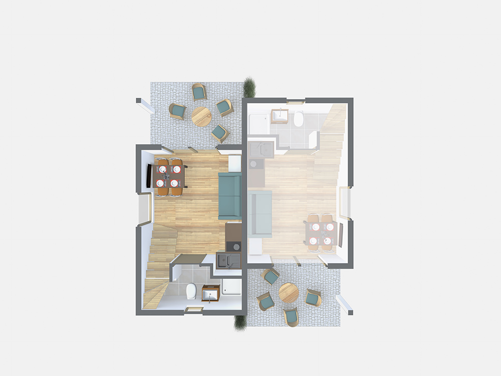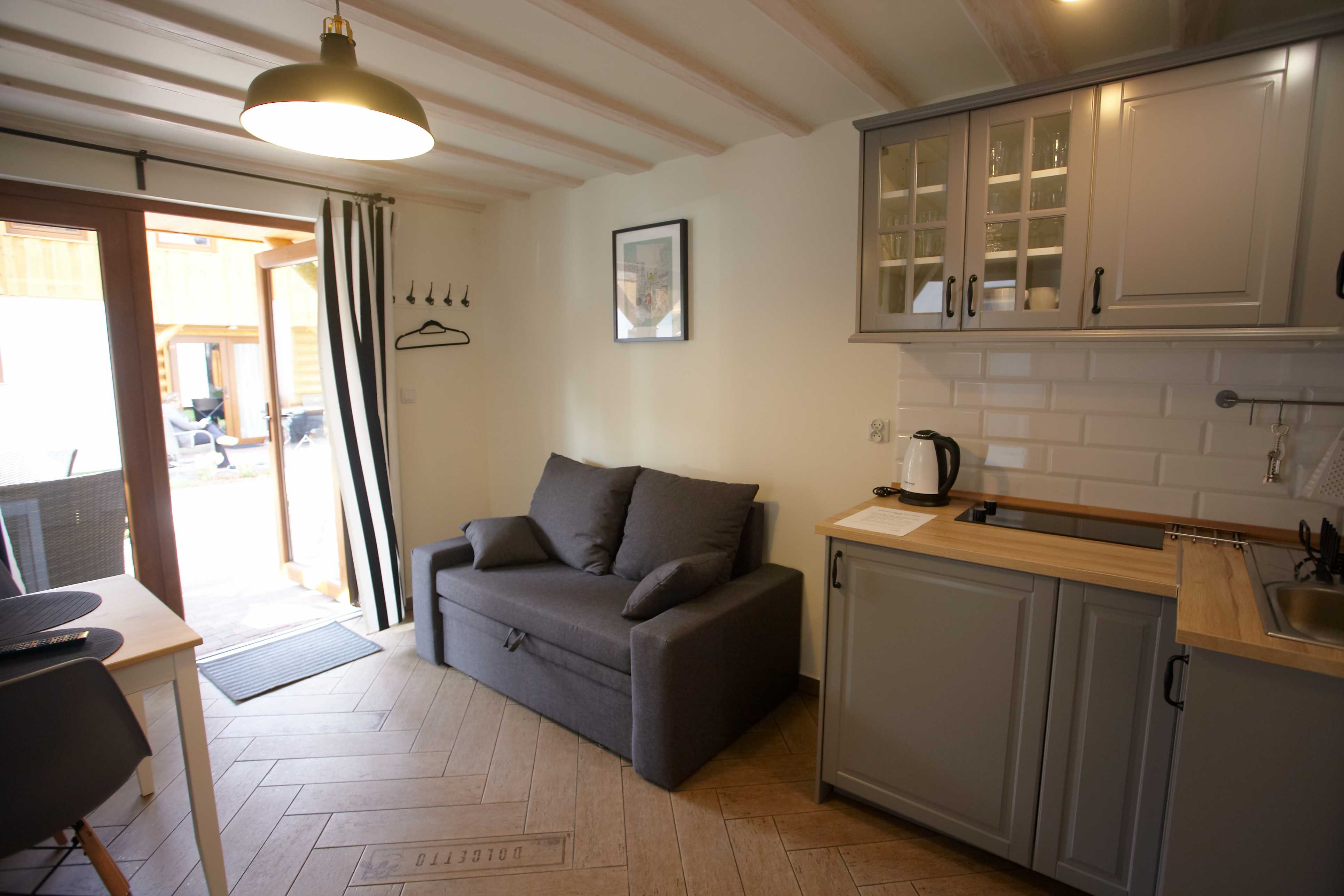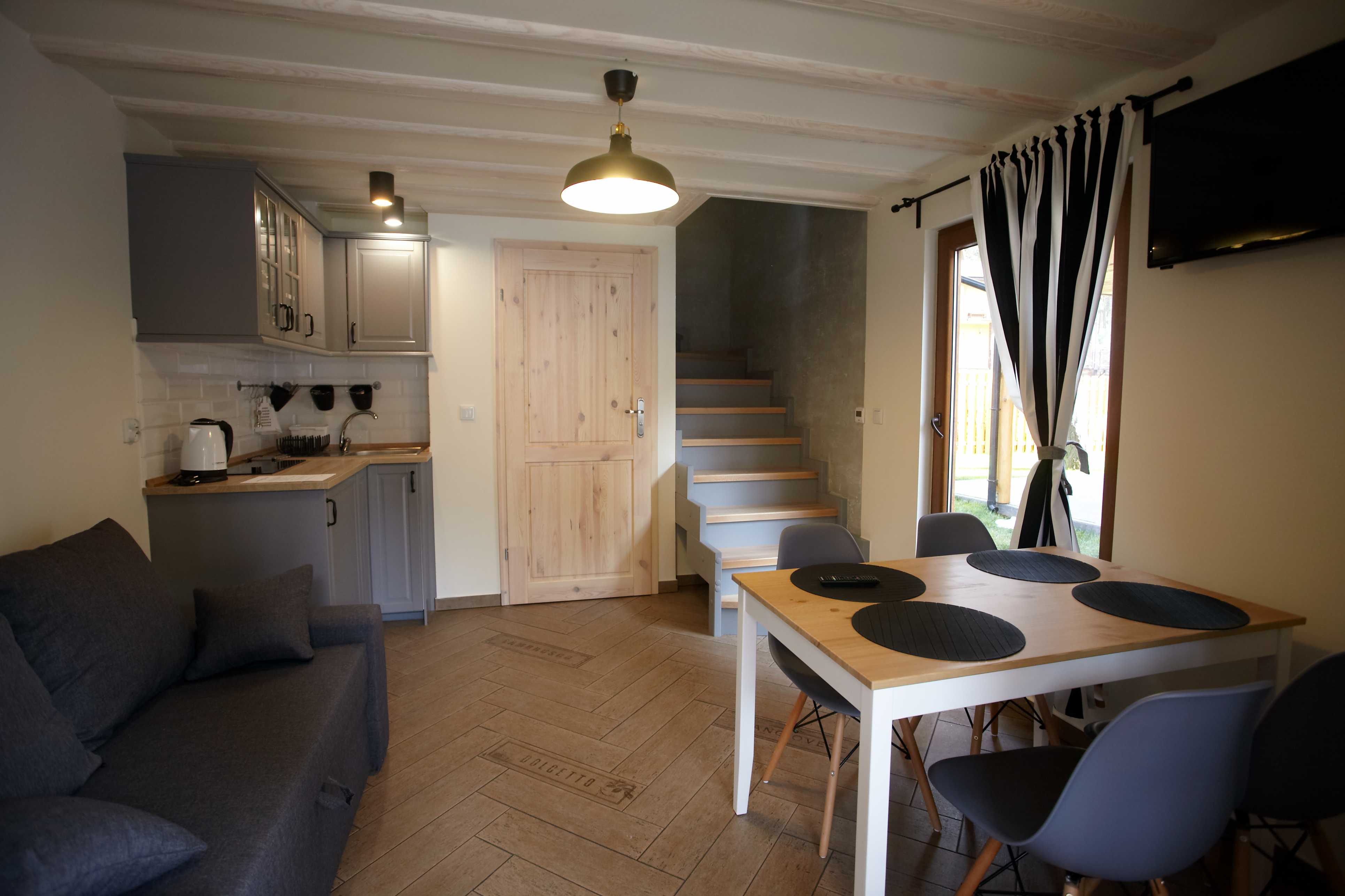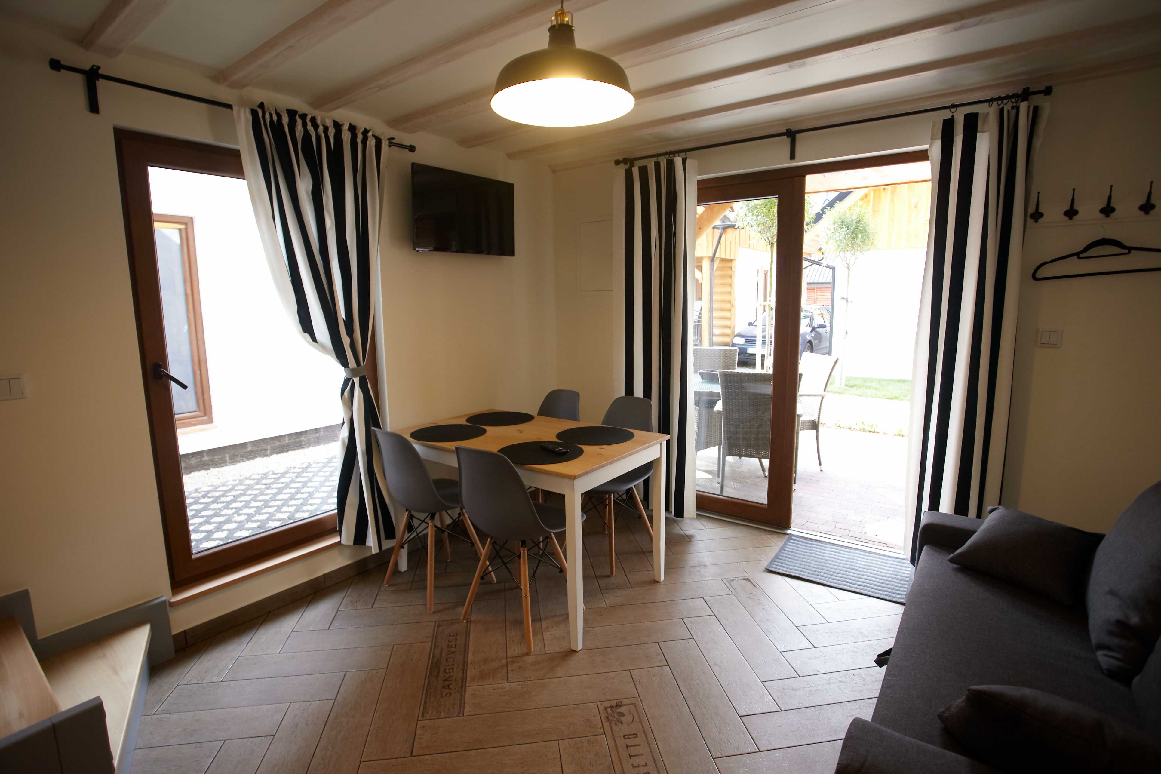 Ośrodek Na wczasowej to między innymi osiem luksusowych, niezależnych domków w zabudowie bliźniaczej, każdy z osobnym wejściem i tarasem, wyposażonym w zestaw wypoczynkowy. Domki składają się z położonego na parterze salonu z aneksem kuchennym oraz łazienki. Aneks kuchenny wyposażony jest w lodówkę, dwupalnikową kuchenkę elektryczną, czajnik, toster, ekspres do kawy, naczynia, sztućce i garnki. W salonie znajduje się sofa z funkcją spania ( 120 cm ). Na piętrze są dwie sypialnie – jedna z podwójnym łóżkiem małżeńskim, druga z łóżkiem pojedynczym i rozkładaną 2-osobową sofą. Każdy z domków może jednorazowo gościć od 4 do 6 osób. Lokale wyposażone są w telewizję satelitarną, internet oraz sprzęt plażowy (dwa leżaki, parawan).